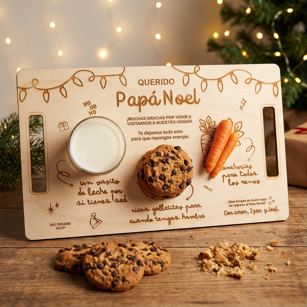 Bandeja de madera para ofrecer comida y bebida tanto a papanoel 🎅🏻 como a los 3 reyes magos 🤴🏿.