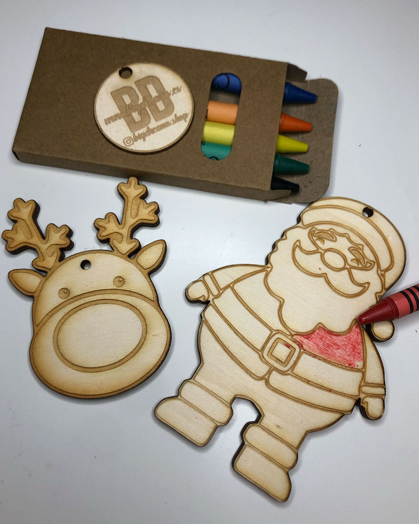 Pack de Papá Noel y reno de madera y cajita de  6 ceras, para dejar la