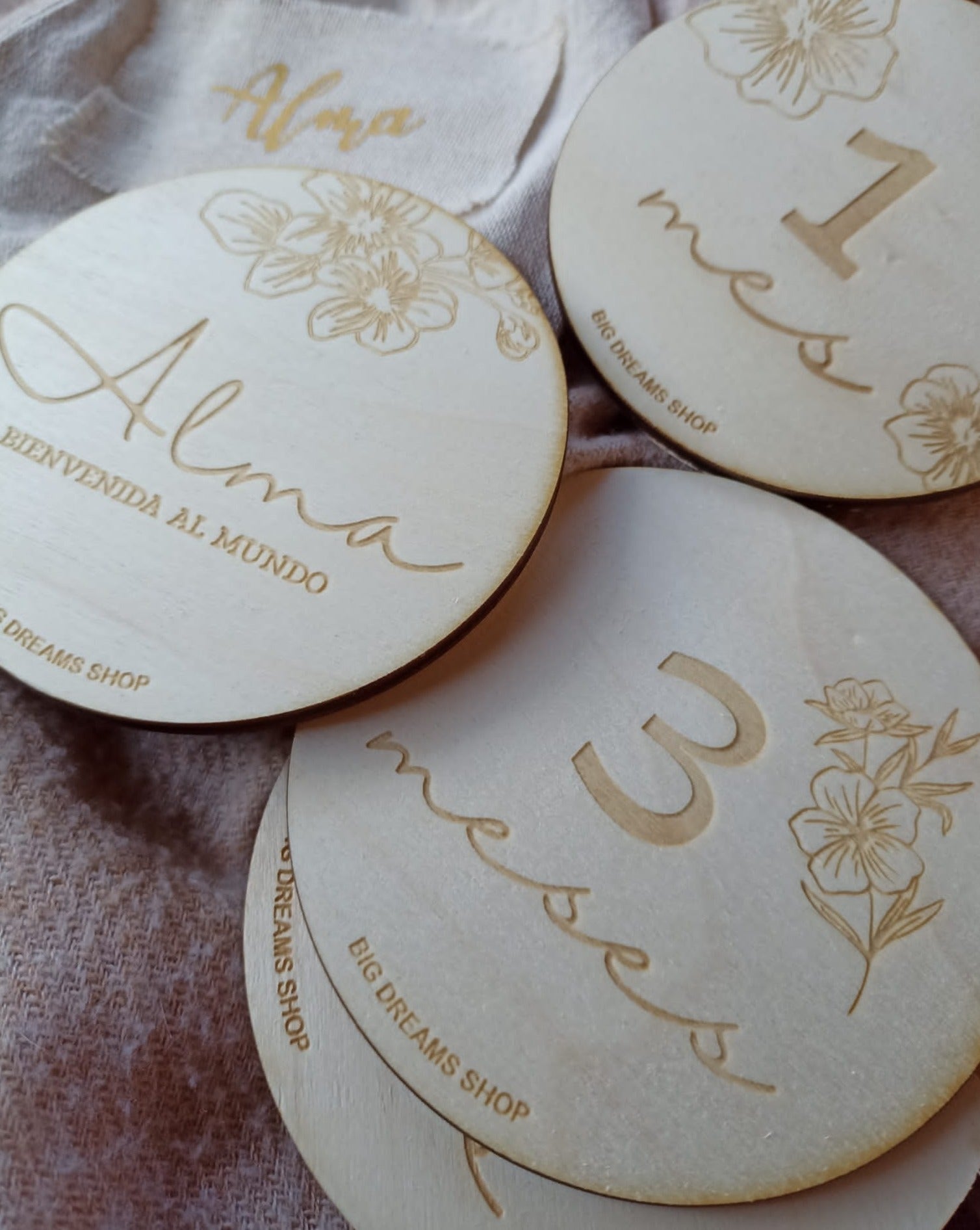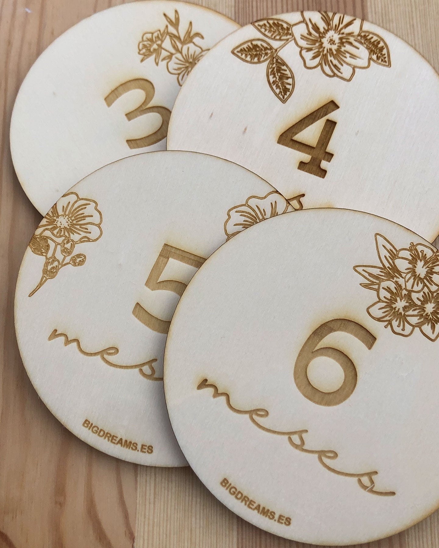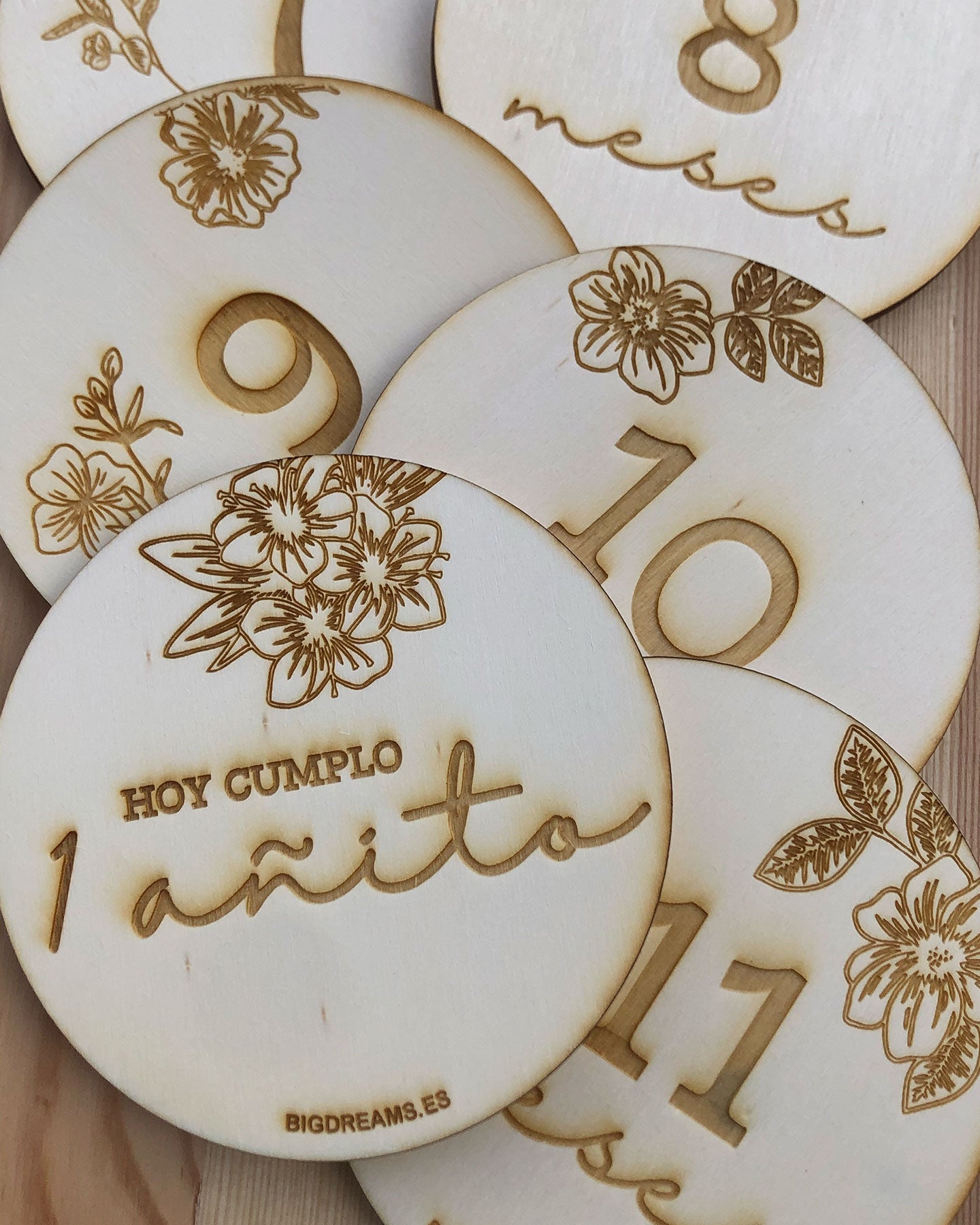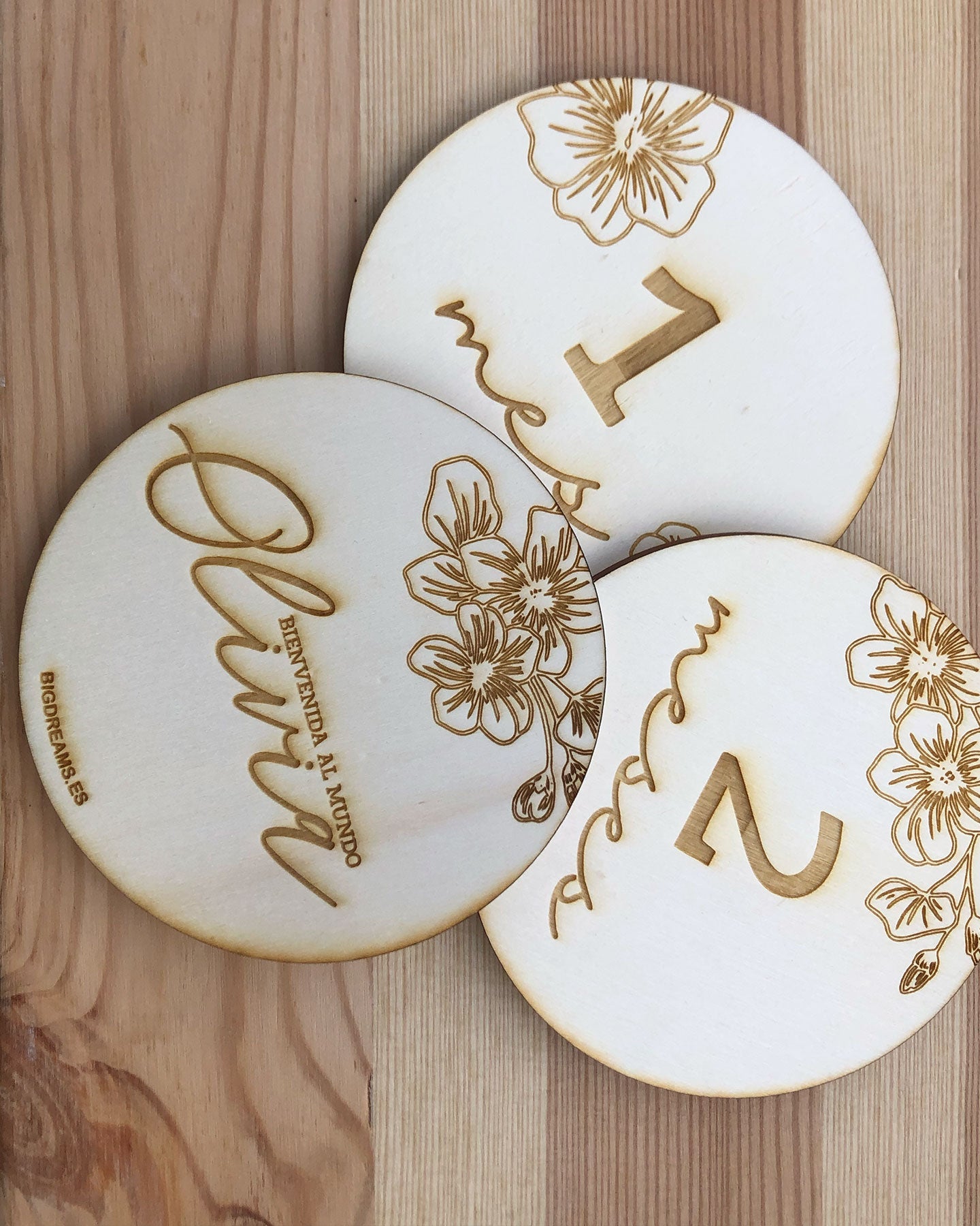 Pack de placas de madera para hacer una foto mes a mes el primer año de tu bebé.